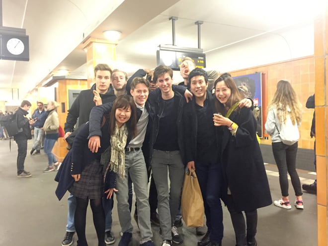 帰りの電車のホームで陽気な若者と。初対面にも関わらず、みんなフレンドリー。ベルリンが大好きになりました。