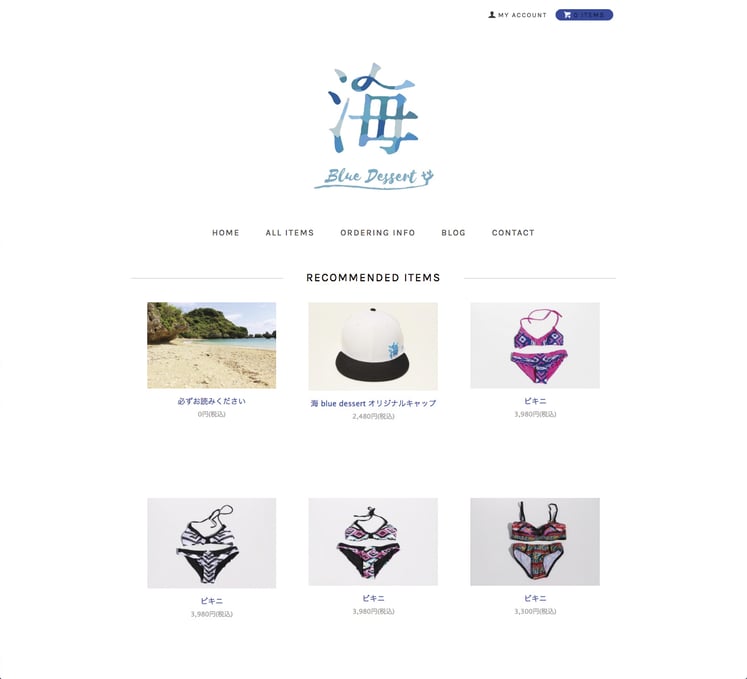 遠藤千春さんが展開するビーチウエア ブランド「blue dessert」のネットショッピングサイトです。